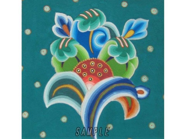 作品名 暈繝文様ウンゲンモンヨウ(A) 原画 額のサイズ 縦14.5㎝×横14.5㎝ 序文と注記 作家「近藤 貴美子」 製作期間 0.5ヶ月 価 格 ¥33,000税込(額付き本体価格¥60,000⇒¥30,000) 緑地ドット柄に小さな宝相華ホウソウゲ(B)を暈繝ウンゲン(A)で描いています。 天から振ってくる宝相華は吉方に置いて頂くとより開運に繋がります。 小さな葉の組み合わせはキュートで可愛らしくどんなお部屋に飾っても その空間に幸せオーラを届けてくれるでしょう。 作家 近藤 貴美子(Kimiko Kondo) 大阪府出身 京都嵯峨美術短期大学日本画卒業、西陣織デザイン、中学校美術教師を経て、仏画修復の伝承を学び独自の画風を確立。現在吹田にて仏画教室を主宰。オンライン講座も開催しています。 【作家】 近藤 貴美子(Kimiko Kondo) 大阪府出身 京都嵯峨美術短期大学日本画卒業、西陣織デザイン、中学校美術教師を経て、仏画修復の伝承を学び独自の画風を確立。 現在吹田にて仏画教室を主宰。オンライン講座も開催しています。詳細は下記HPよりご確認ください。 【作家先生からのメッセージ】 密教で仏画は発展しました。日本画の絵の具のまったりとした美しさ、静の美しさ、そして細密な美しさを古来の手法で描いております。 1000年も、又、それ以上も祈れるよう、朽ちないそして自然な物から作り出した(紙、にかわ、絵の具など)優しさを皆様にお届けできるよう日々精進しております。 仏画の中には一例として、京都の中でも世界遺産にも登録されている宇治の平等院の「鳳凰堂」の柱・壁面・長押・貫・天井、に描かれている極彩色の菩薩や絵巻模様を一つずつ取り出して、復元して描いた菩薩(ぼさつ)や暈繝(うんげん)紋様をモチーフにたくさん使っております。 暈繝(うんげん)の美しい紋様や天然の岩絵の具、水干(すいひ)絵の具で描かれる仏画の配色の美しさもぜひ堪能してみて下さい!! 【ホームページ】 https://kimiko-kondou.jimdo.com