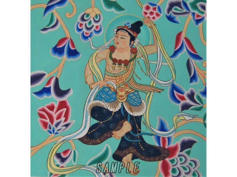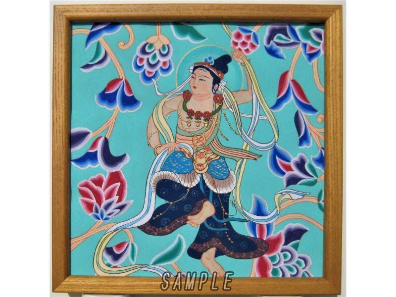 世界遺産として有名な京都宇治の平等院鳳凰堂(国宝)の円柱に描かれている文様「舞菩薩」を復元彩色した作品です。